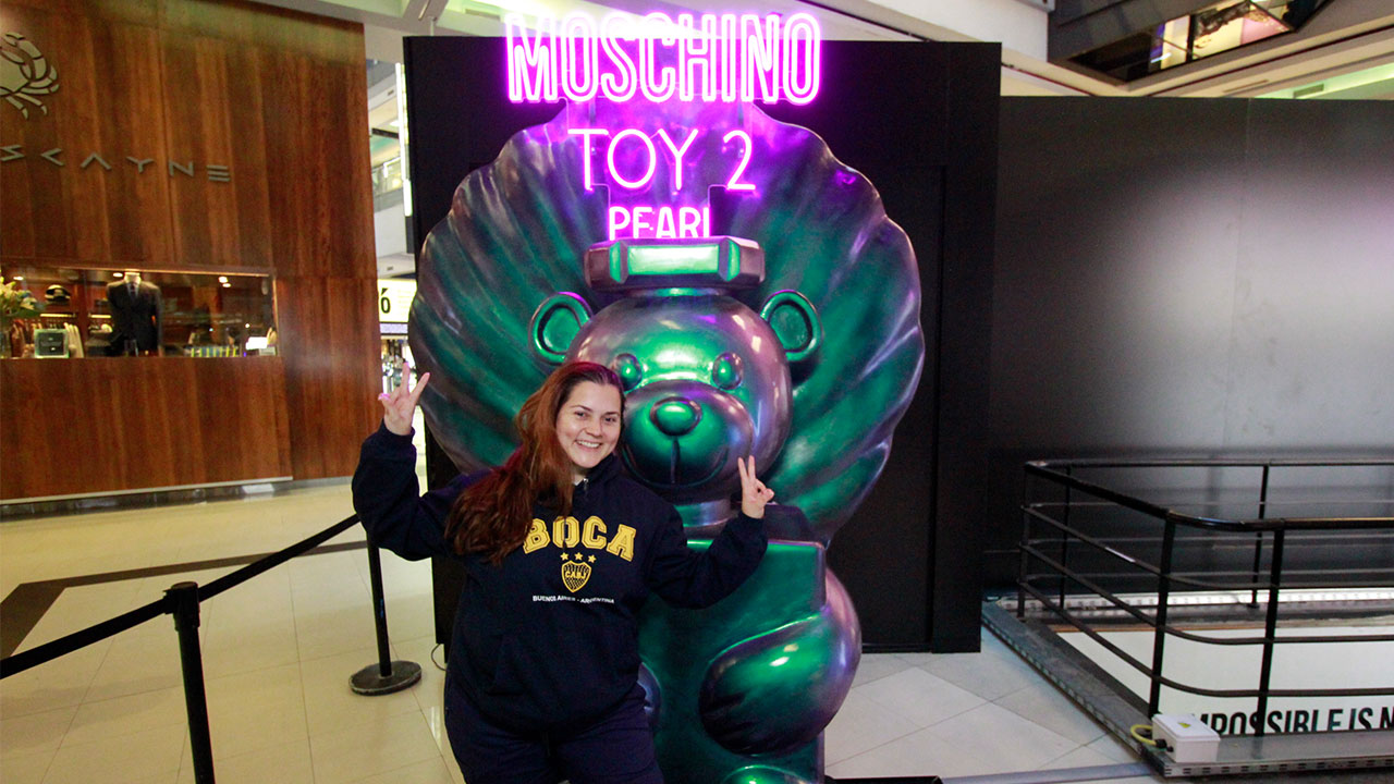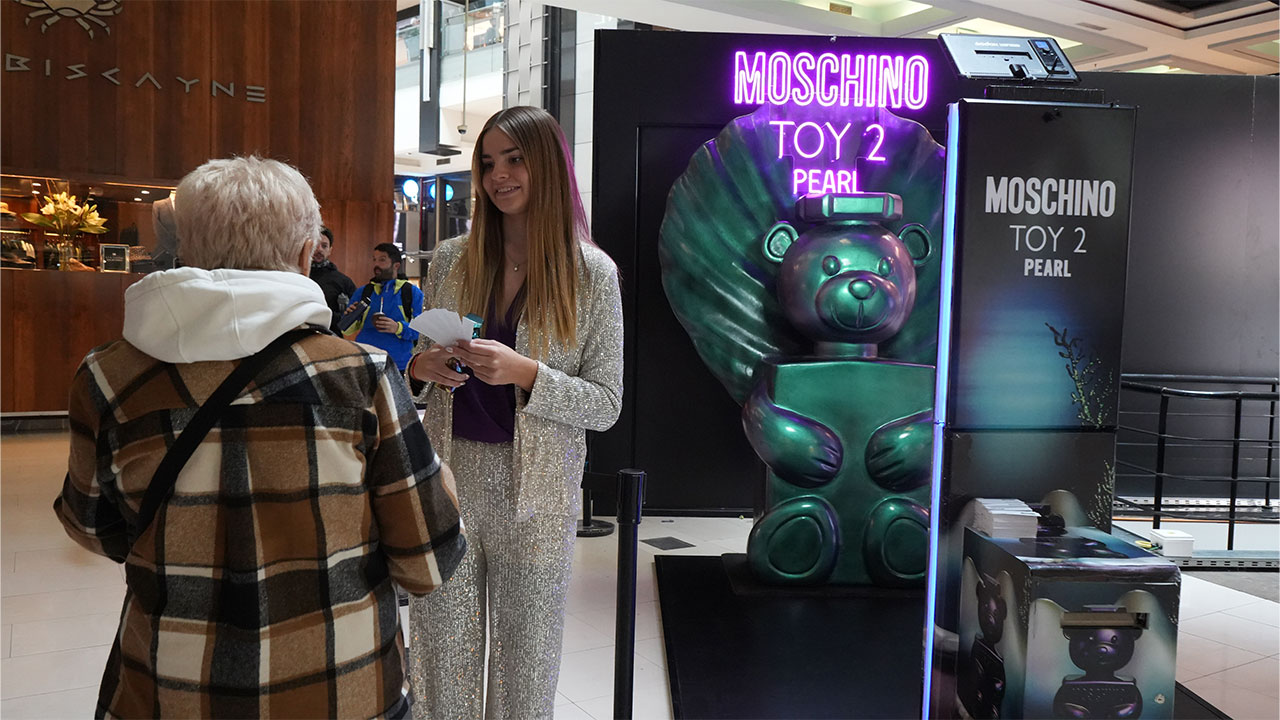 Junto com a Latcom, desenvolvemos uma proposta incrível para o lançamento do novo perfume da Moschino. Instalamos em diferentes shopping centers uma réplica gigante esculpida à mão da embalagem do produto, com cores deslumbrantes e um fundo de neon para convidar os visitantes a tirar fotos, experimentar o perfume e levar uma amostra.