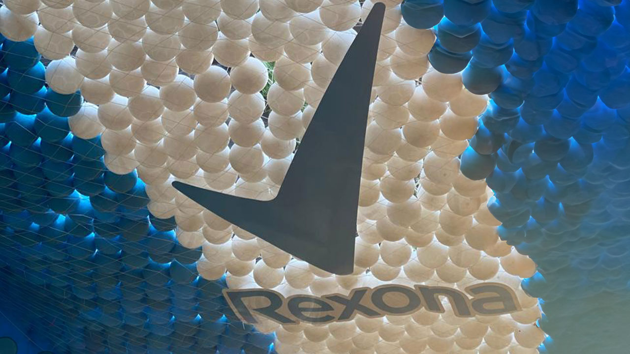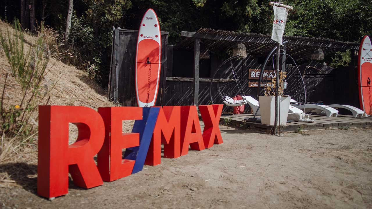 Presença da marca na placa com guarda-sóis, espreguiçadeiras e playgrounds.